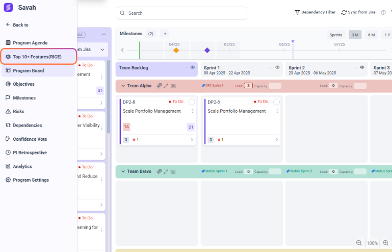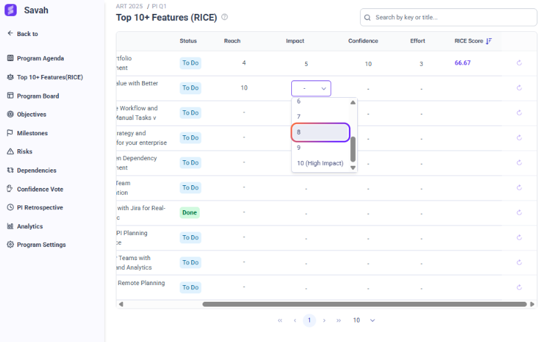 Savah allows you to toggle between **WSJF** and **RICE** prioritization methods based on your team's preferred framework.
