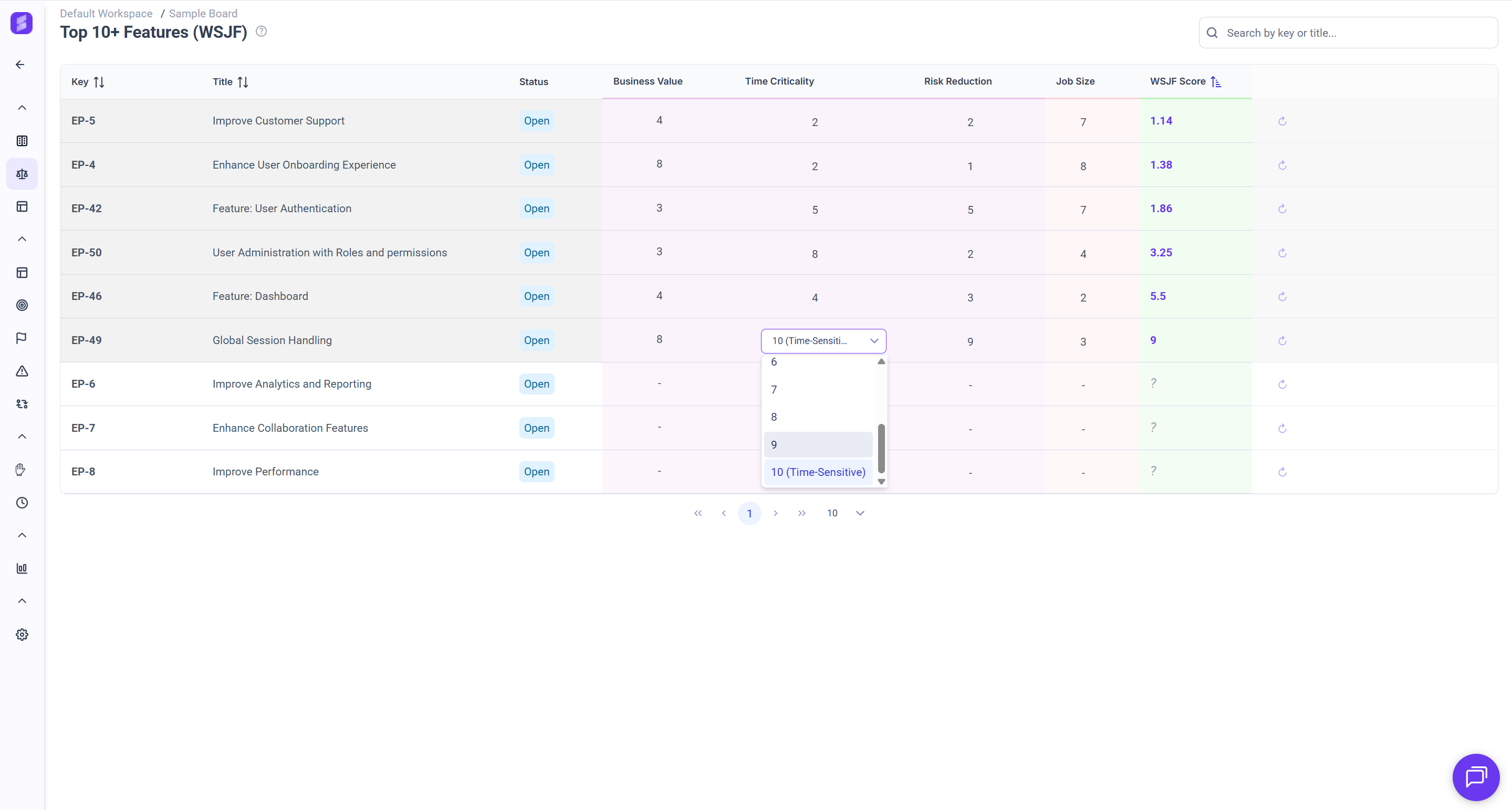 4. Features are automatically sorted in descending order of WSJF score in the listing view.
